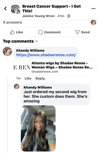 “I never thought my insurance would pay for my wig, but thanks to Shadae I was able to walk out feeling beautiful again without stressing about the cost. This changed my life.”
