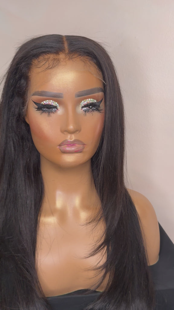 This is a CAMBODIAN MACHINE MADE GLUELESS WIG that we MAKE IN HOUSE and customize by bleaching the knots, pre-plucking hairline, and styling like the picture you are viewing.
